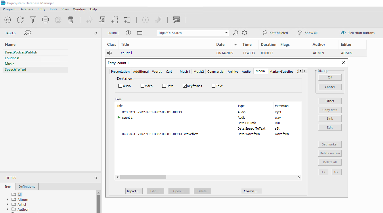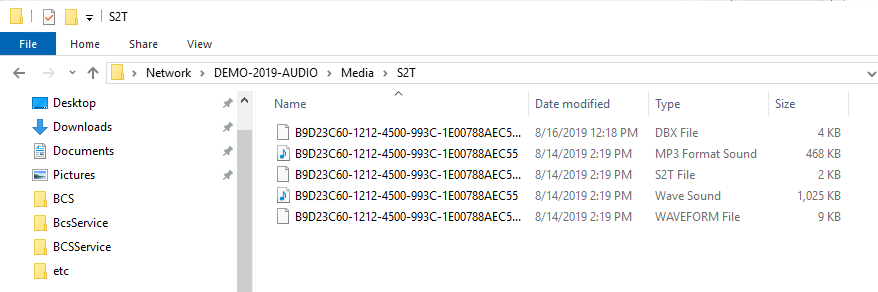 As you can see in the images below, there are 5 files attached to the one audio file in the media directory. One is the S2T file.