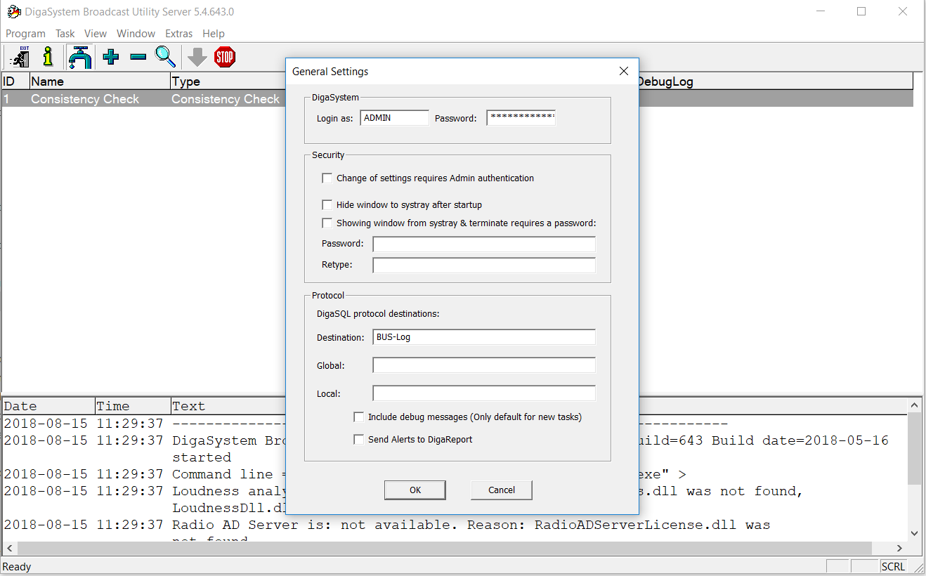 2. To change general settings, select such in the Program drop menu.