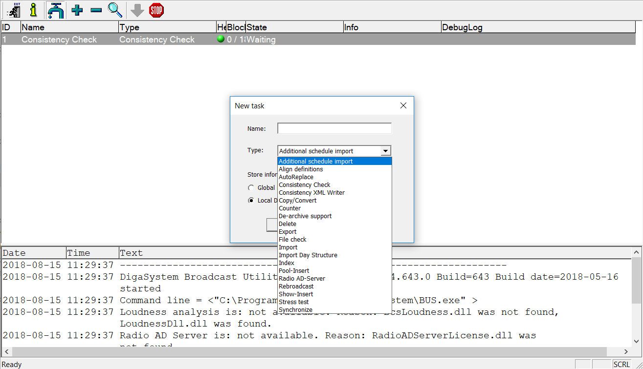 3. To add a task click the + sign (removal is the - sign). Select your type, then name the task in such a fashion as it is easy to keep track of.