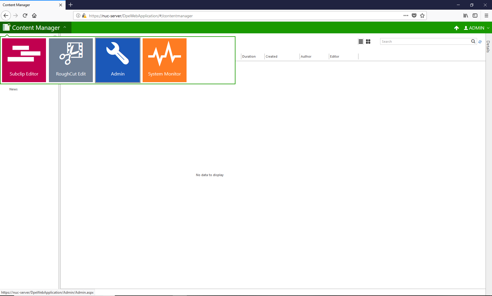 - Click on 'Admin'.