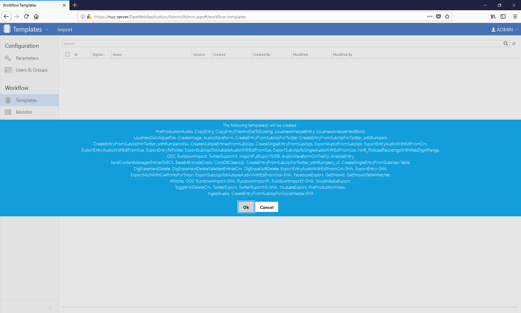 VII.2.4 Import Workflow Templates (WFTs)