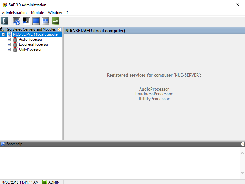 - When you ope SAF Administrator, you will be greeted with the services currently installed on that host.