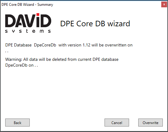 After the configuration a final window will confirm that the DpeCoreDb has been successfully installed.