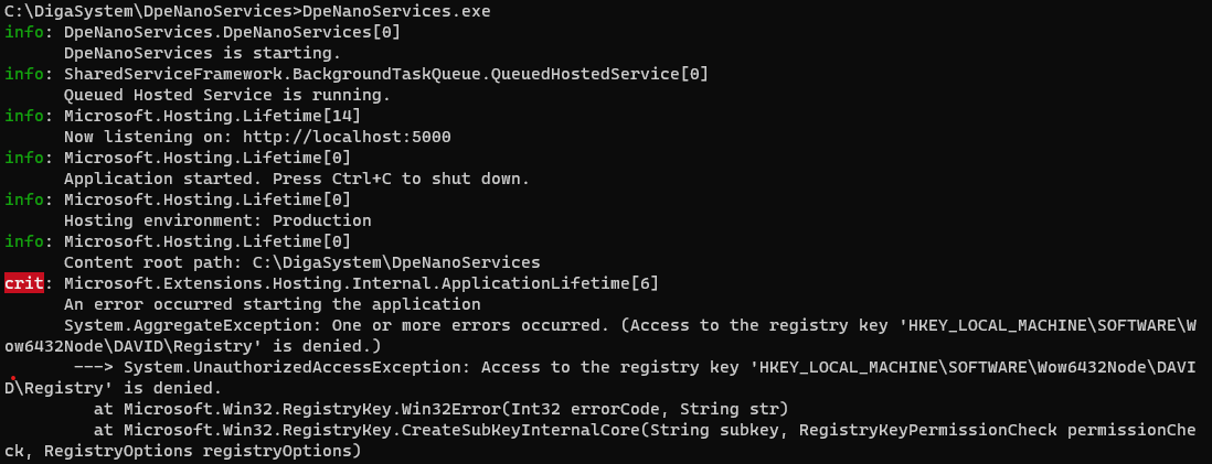 Command line start error message: “Access to the registry key 'HKEY_LOCAL_MACHINE\SOFTWARE\Wow6432Node\DAVID\Registry' is denied”