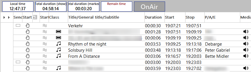 This example describes how to use OTM in DigAIRange to create a transition between two music takes with spoken announcements and a few jingles. Let's assume that the show already exists, and that you have a jingle bank from which you can pick jingles.