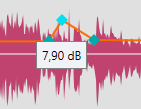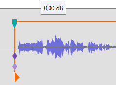 | Between the Mark In and Mark Out the volume line can be manipulated by clicking on it with the left mouse button; this will create a fade point that you can move as you like. | ||