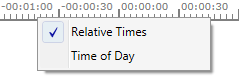 If you want to see the Relative Times, in the ruler's context menu select it.