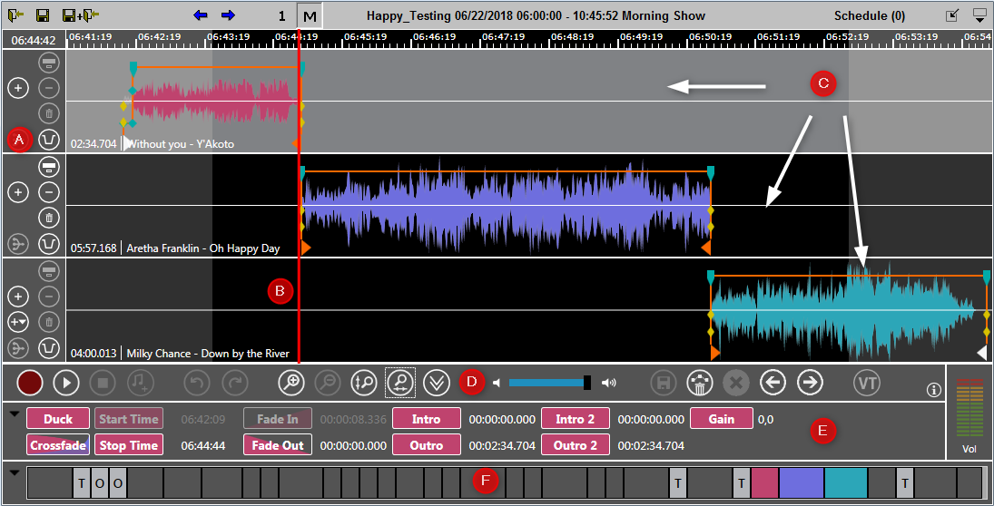 MultiTrack mode of OnAIR TrackMixer is available in DigAIRange and TurboPlayer (not in DBM ). MultiTrack mode allows up to fifteen tracks simultaneously and provides Voice-Over recording function.
