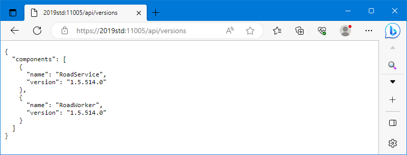 will answer with the current versions of ROAD Service and Worker. If this succeeds the ROAD Service is running, accessible via HTTP/HTTPS and it has successfully accessed RoadWorker.exe to request its version.