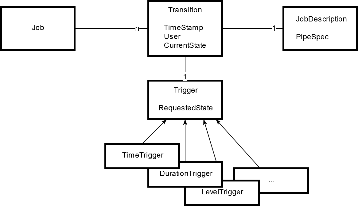 | Trigger | Describes when (in terms of time or other conditions) to do a transition and specifies the new requested job state. To be extensible inheritance is used to represent different kinds. |
