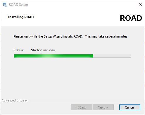 The setup optionally starts (default) the RoadService.exe, which is a window service. If the Service failed to start, information about the root cause can be found in the log file. The log files for the service are stored in %Programdata%/ROAD/Logging/Service.