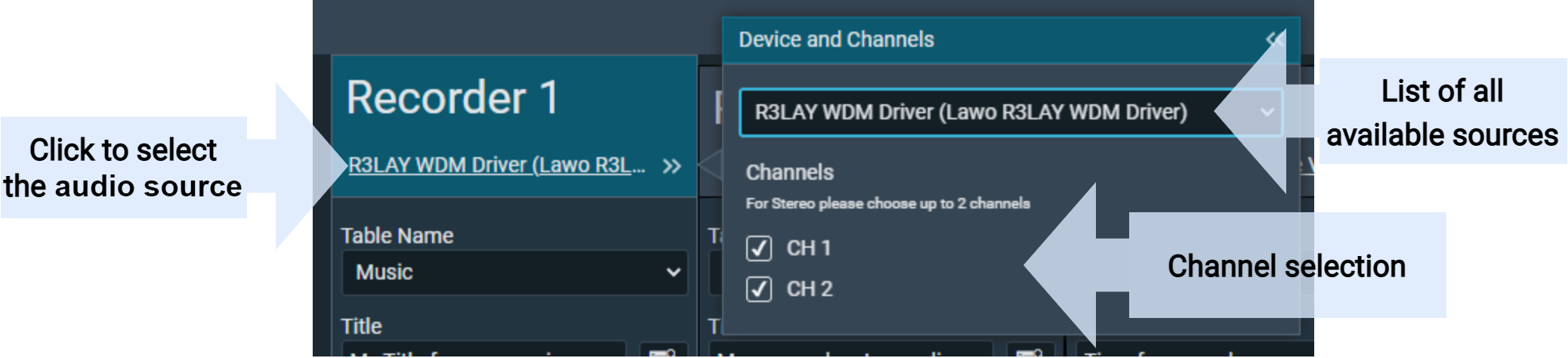 - Source monitoring (prelisten control) of the selected audio input directly inside the InstaRecorder UI