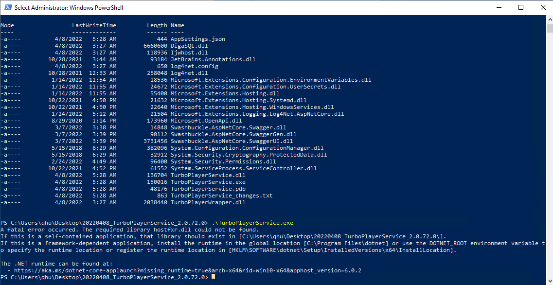 IMPORTANT: at the moment, the TurboPlayerService.deps.json, TurboPlayerService.runtimeconfig.json and runtimes/ should exist in the package in order to have it successfully running