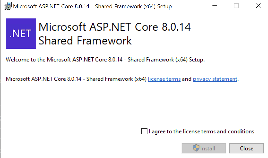 Install .NET 8 Runtime and .NET 8 Core Runtime (please see the minimum version in System Requirements)
