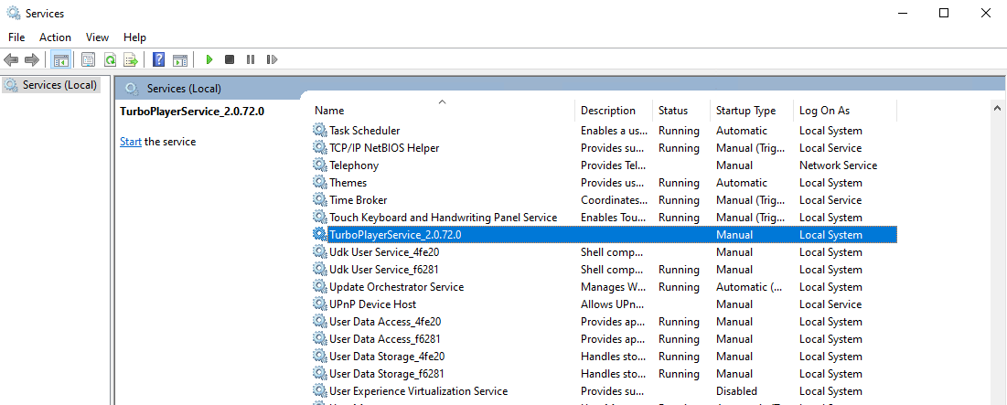 sc.exe delete "TurboPlayerServiceInstanceNameOfYourChoice"