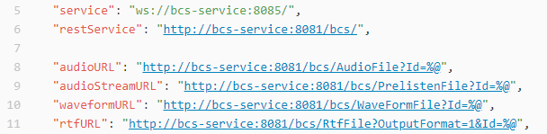 Step 2: Adjust all URL parameters according to your BcsService configuration: