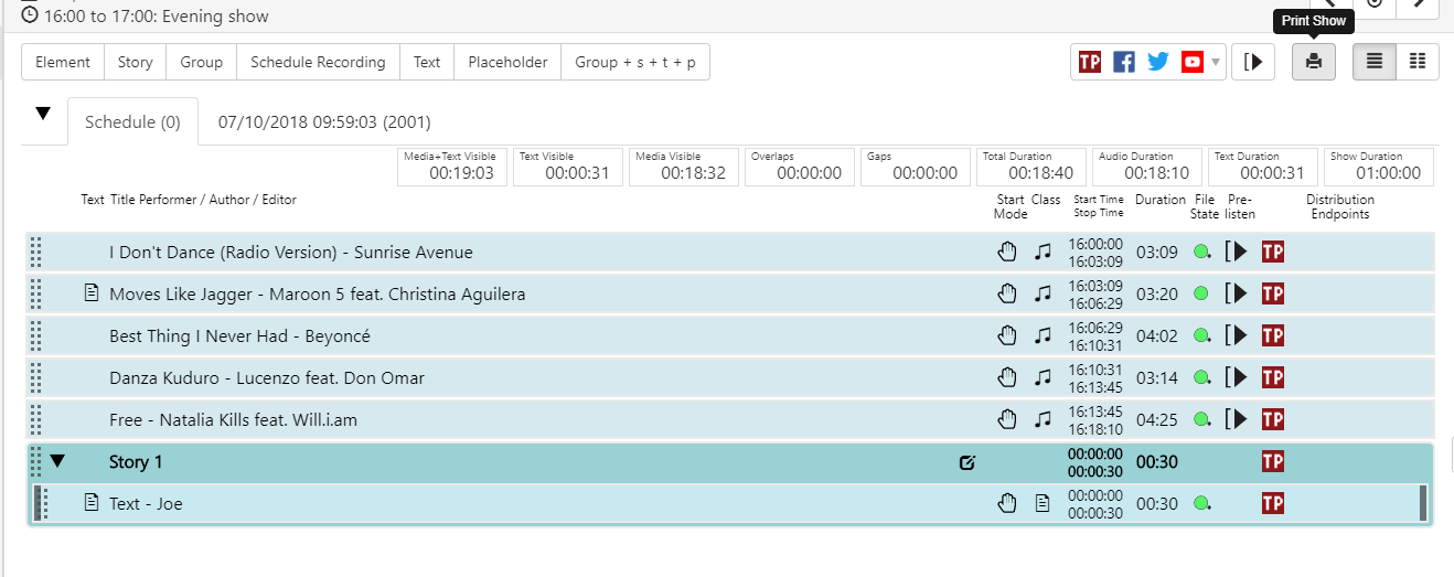 WebDigAIRange allows you to print a selected show/group/story or element. The layout for printing can be configured, for more details see Printing Template Configuration.
