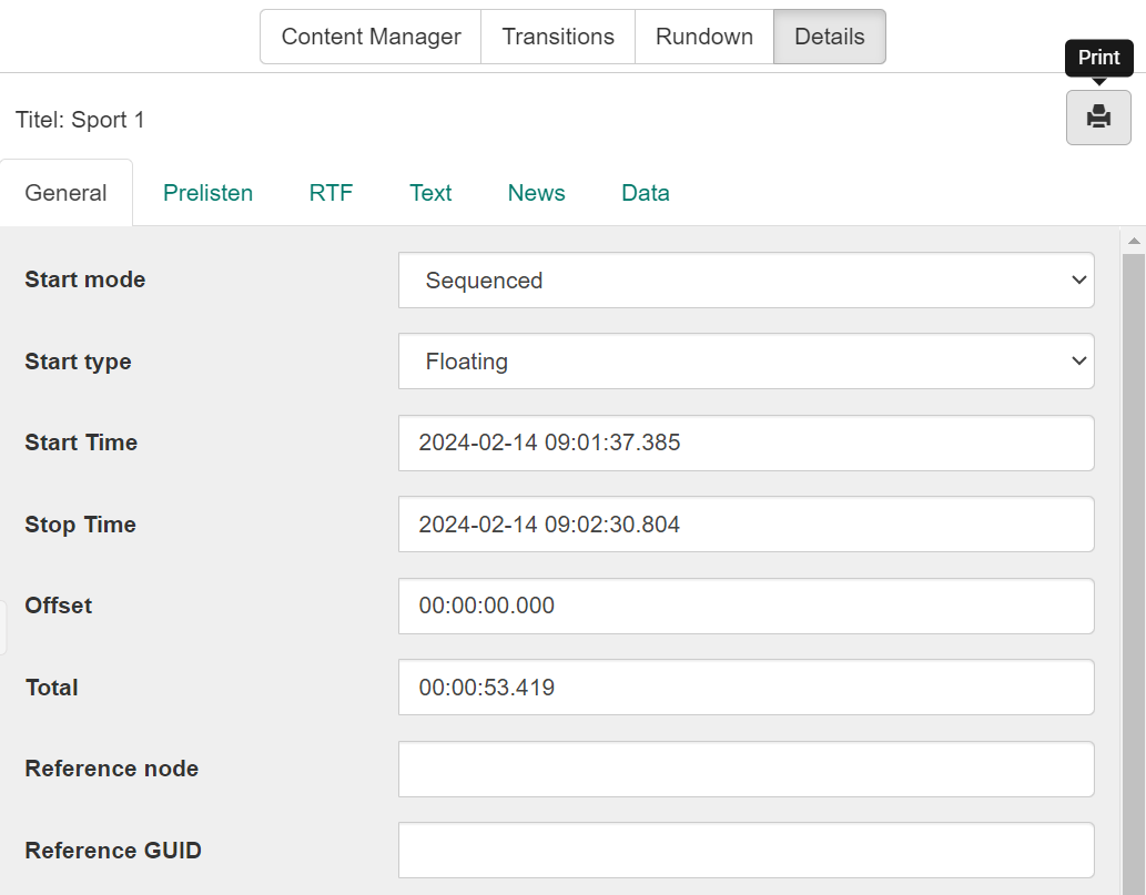 WebDigAIRange allows you to print a selected show/group/story or element. The layout for printing can be configured, for more details see Printing Template Configuration.