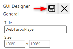 The first section of the GUI Designer configures the page title and size constraints. By default, a WebTurboPlayer layout fills the browser window by 100%, but this can be changed to absolute or relative values, like: