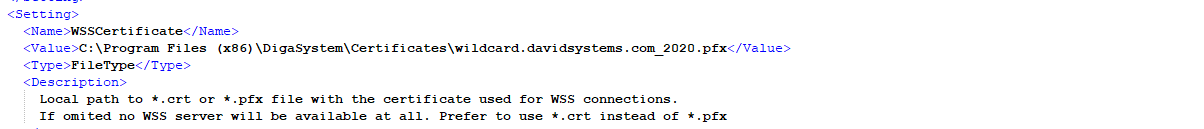 This example uses a folder in the DigaSystem directory created for this purpose and called Certificate.