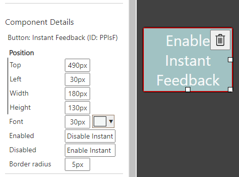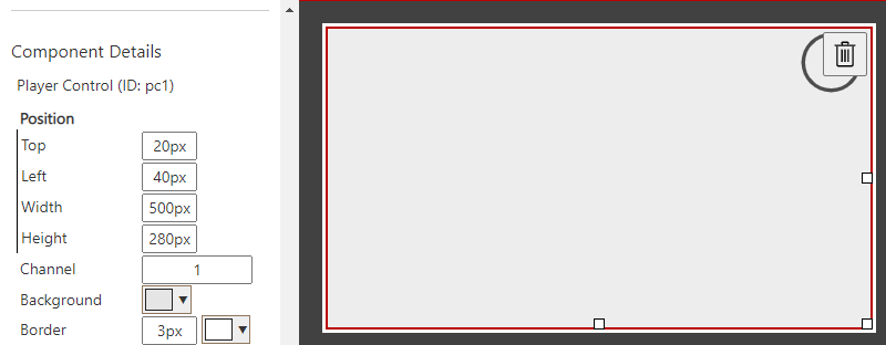 Each component has a trash bin icon in the top right corner. Clicking this deletes the component from the screen and moves it to the Trash.