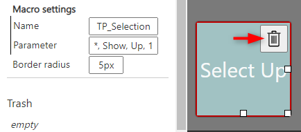 Parameter | Parameters which are handed over to TurboPlayer macro. (Example: *, Show, Up, 1) Dynamic parameters: