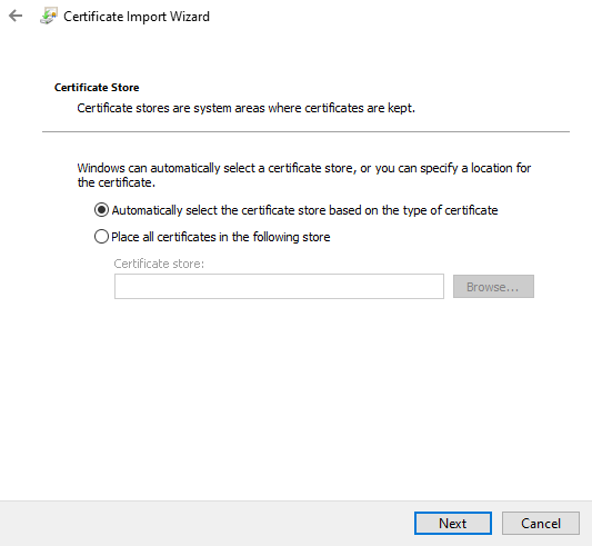 Step 5: Select "Automatically select the certificate store based on the type of certificate" and click "Next".