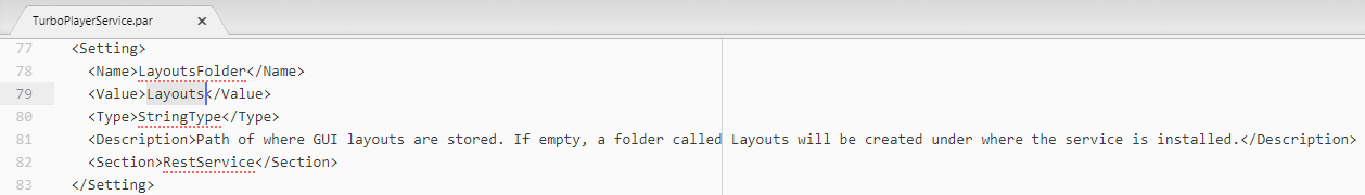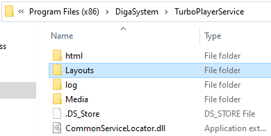 There is an additional folder where the layout settings of the different GUIs and templates for layouts are located. By default, it is the subfolder “Layouts” below the installation folder. If this folder does not exist it will be created automatically by TurboPlayerService.