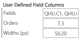 The columns for user defined fields are defined as comma separated values in the Fields as shown above. Like the pre-defined columns, the columns for user defined fields can also be given the orders, also as comma separated values.