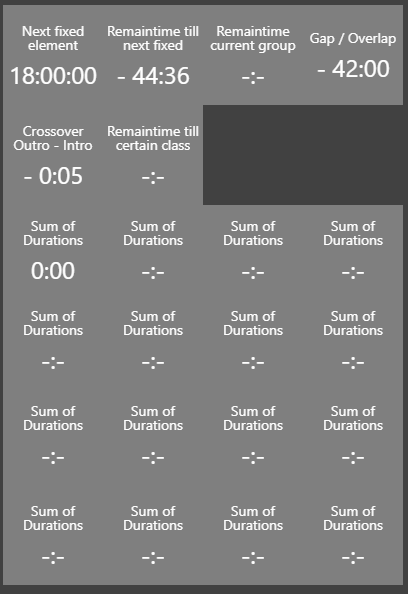 For time info components to work, it is necessary to have one instance of Desktop TP GUI connected. In the settings > miscellaneus tab, "Send computed times of all time info windows to engine" needs to be enabled. And for time info components on WTP to show values, the corresponding Time Info windows need to be added to the layout of TP GUI.