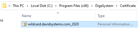 This example uses a folder in the DigaSystem directory created for this purpose and called Certificate.