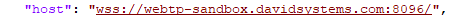 - Make sure you set the host properly with wss, the fully qualified domain name (FQDN), and the wss port like this example: